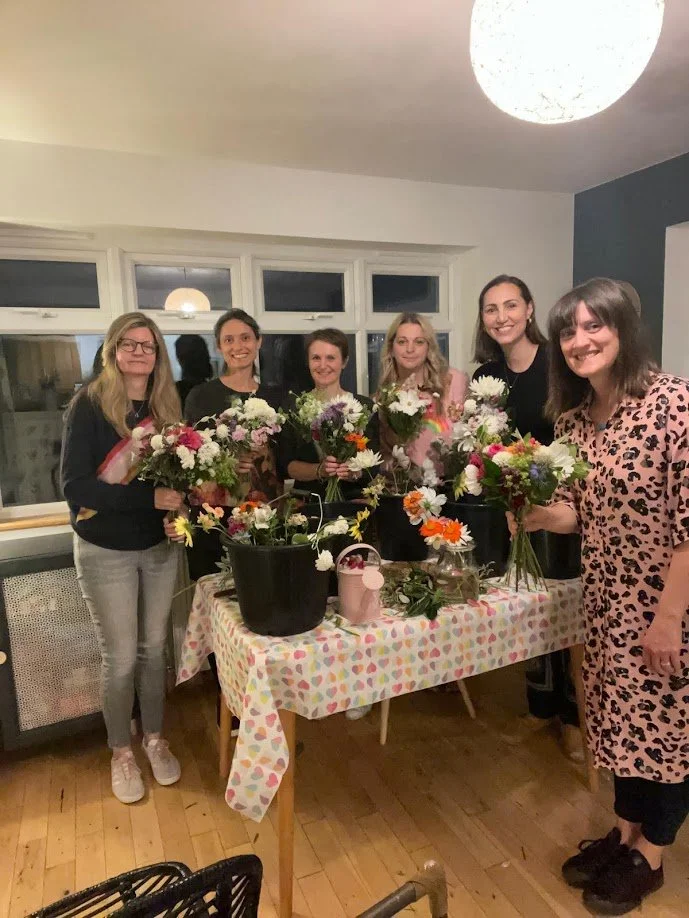 Halfway through a summer bouquet workshop. I’m second on the left.