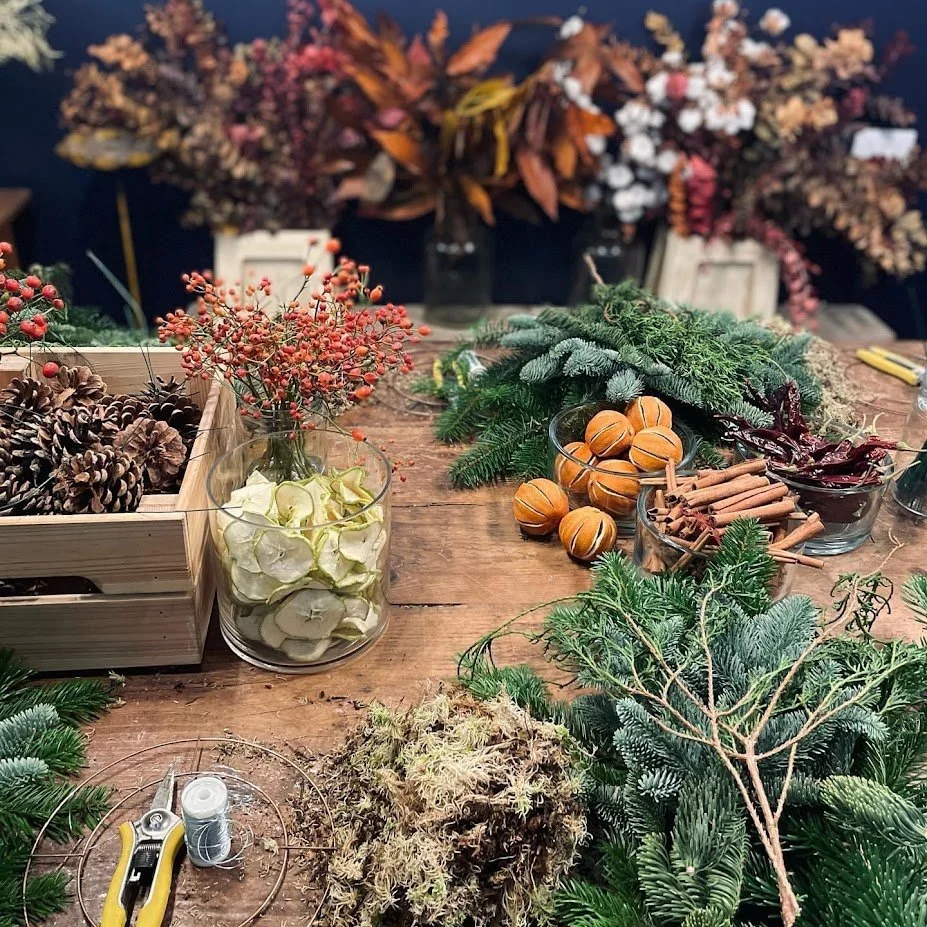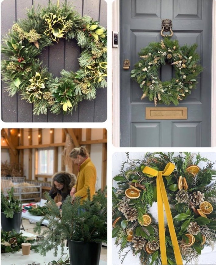 A workshop in the hosts barn & some of their creations. I’m crouching down explaining how to attach a dried orange slice!